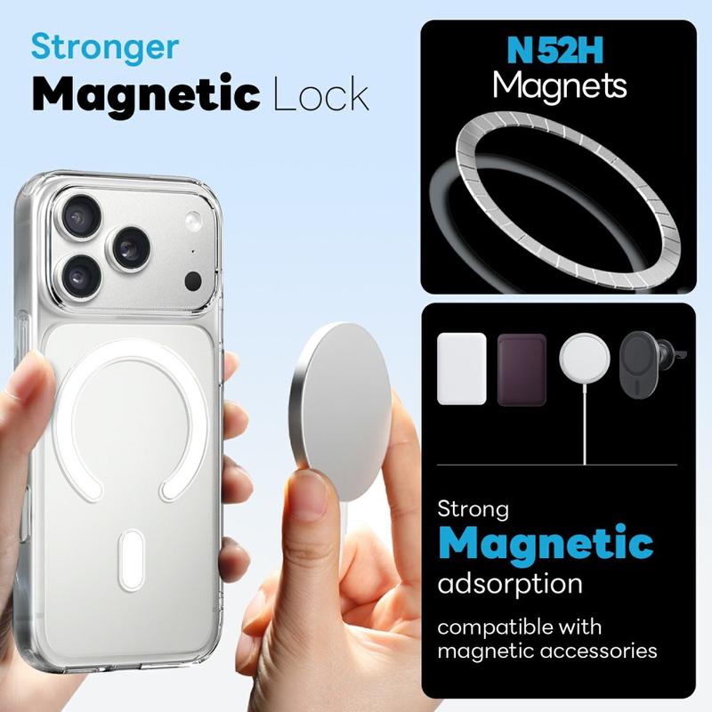 - MagSafe-kompatibel magnetisk design - Inbyggda starka magneter säkerställer exakt inriktning för trådlös Qi-laddning och enkel anslutning till magnetiska tillbehör som powerbanks, bilfästen eller plånböcker.