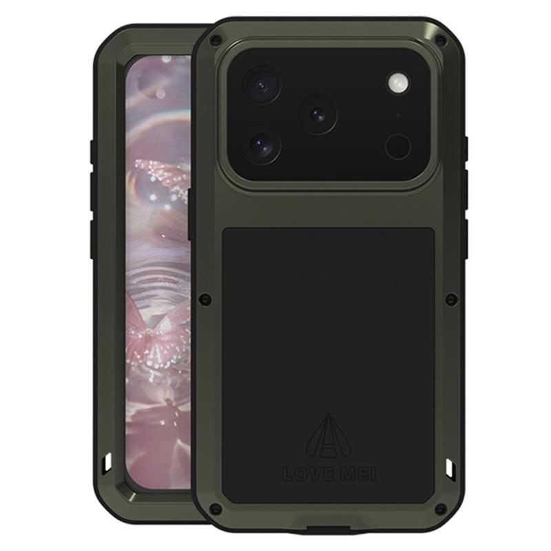 Love Mei Powerful Hybridskal för iPhone 17 Pro - kraftigt stötsäkert skyddsfodral av metall och silikon