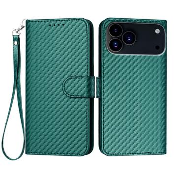 Premium plånboksfodral med rem för iPhone 17 Pro - kolfiberstruktur