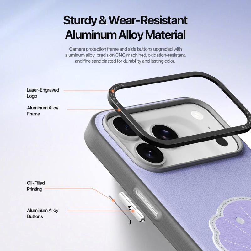 Kameraskyddsramen och sidoknapparna är tillverkade av aluminiumlegering, exakt CNC-maskinbearbetade och avslutade med fin sandblästring. Detta garanterar en långvarig färg, hållbarhet och en premiumkänsla, förstärkt med subtila lasergraverade detaljer.