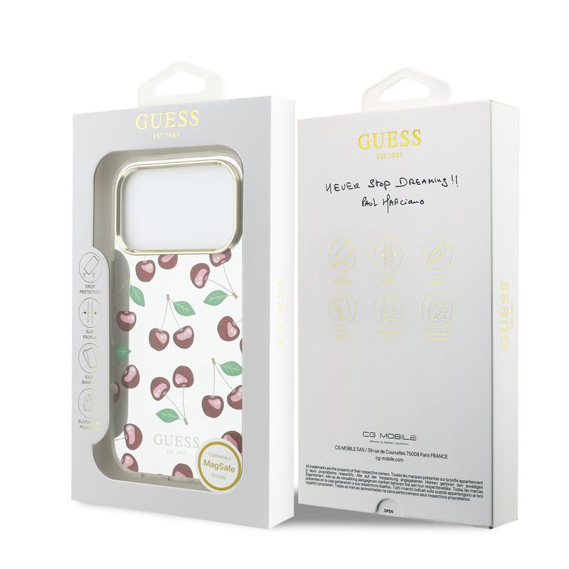 Guess Mirror Glitter Cherry MagSafe Hybrid Skal för iPhone 17 Pro Max - skyddande bakstycke