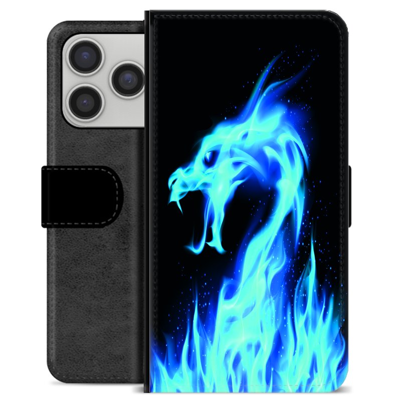 iPhone 17 Pro Premium Plånboksfodral - Blå Elddrake
