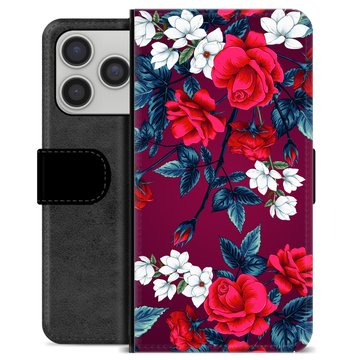 iPhone 17 Pro Premium Plånboksfodral - Vintage Blommor