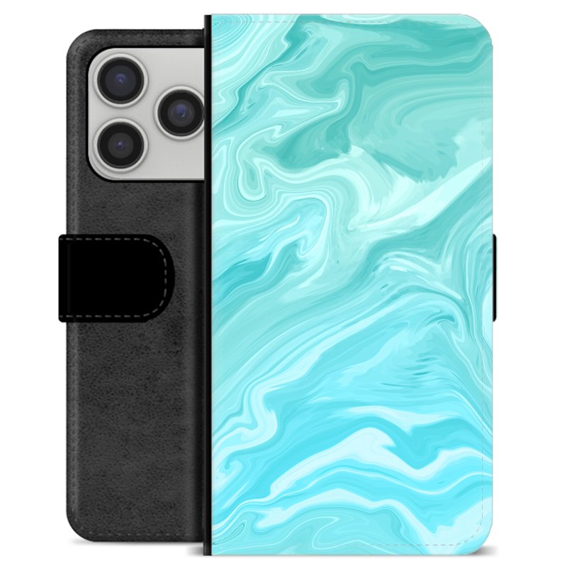 iPhone 17 Pro Premium Plånboksfodral - Blå Marmor