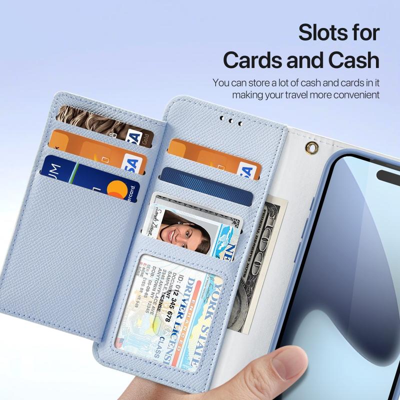 - Använd den löstagbara plånboken för att hålla ordning på dina kort och kontanter när du är på språng