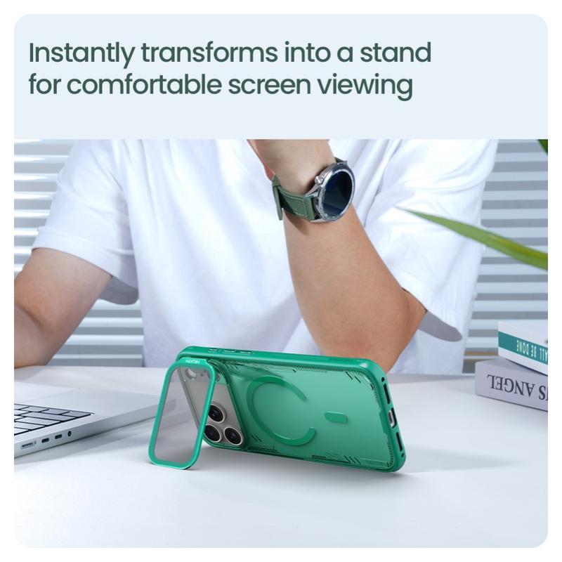 Skydda din iPhone 17 Pro Max med Nillkin IceBlade Prop Magnetic Case. Detta eleganta fodral kombinerar hållbarhet med bekvämlighet och erbjuder full MagSafe-kompatibilitet. Tillverkat av PC och TPU ger det ett robust skydd medan det skjutbara linslocket skyddar din kamera från repor och damm.