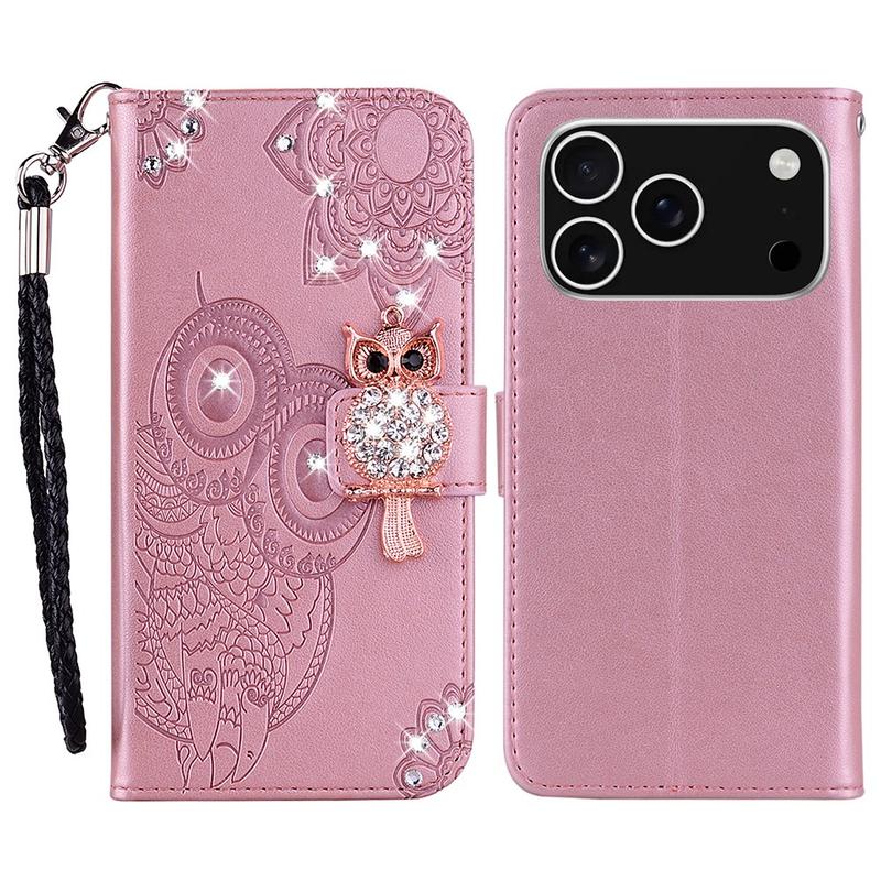 Plånboksfodral med uggla och strass för iPhone 17 Pro Max