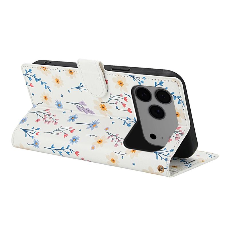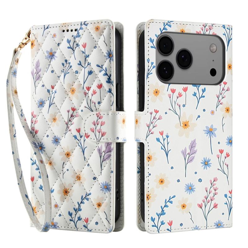 Rombiskt blommigt plånboksfodral för iPhone 17 Pro Max - med rem och kortfack