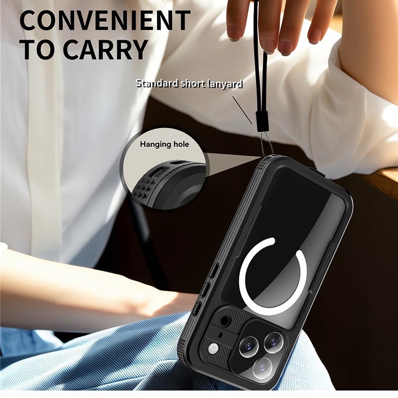 Shellbox M Series vattentäta fodral kombinerar robust skydd med modern bekvämlighet. Dess IP68-klassning och MagSafe-kompatibilitet gör det till ett mångsidigt tillbehör för dem som kräver hållbarhet utan att offra funktionalitet. Oavsett om du är en ivrig dykare eller någon som söker omfattande skydd för din iPhone 17 Pro Max, erbjuder detta fodral sinnesfrid i alla miljöer.