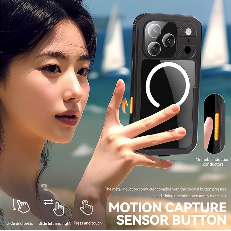 Skydda din iPhone 17 Pro Max under äventyr under vattnet med Shellbox M Series IP68 Waterproof Case. Detta dykskydd i metall är konstruerat för hållbarhet och erbjuder helkroppsskydd upp till 15 meter under vattnet, samtidigt som det bibehåller MagSafe-kompatibilitet för sömlös trådlös laddning. Dess robusta konstruktion säkerställer att din enhet förblir säker under extrema förhållanden, vilket gör den idealisk för dykare, snorklare och utomhusentusiaster.