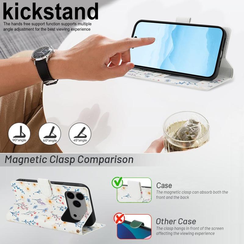 Uppdatera din iPhone 17 Pro med en tunn flip-plånbok som kombinerar säkert skydd och praktisk användning i vardagen. Den rombiskt sydda fronten och det småblommiga mönstret ger en elegant stil, medan ett mjukt TPU-skal dämpar fall och ett polyuretanomslag skyddar mot repor. Flera kortplatser, en kontantficka och en medföljande handledsrem gör det här fodralet till den perfekta lösningen för pendling, resor eller utekvällar.