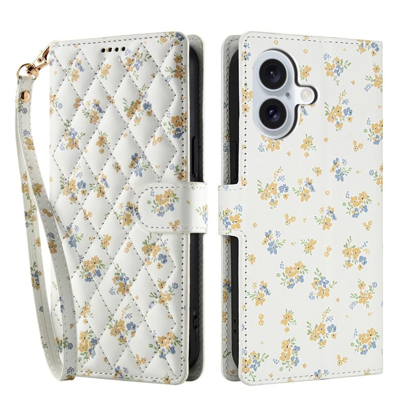 Rombiskt blommigt plånboksfodral för iPhone 17 - med rem och kortfack