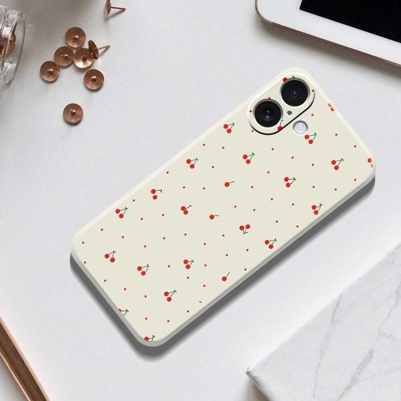 • TPU-skal med körsbärsmönster för iPhone 17 - Soft-Touch Liquid-Silicone-textur med upphöjt kameraskydd