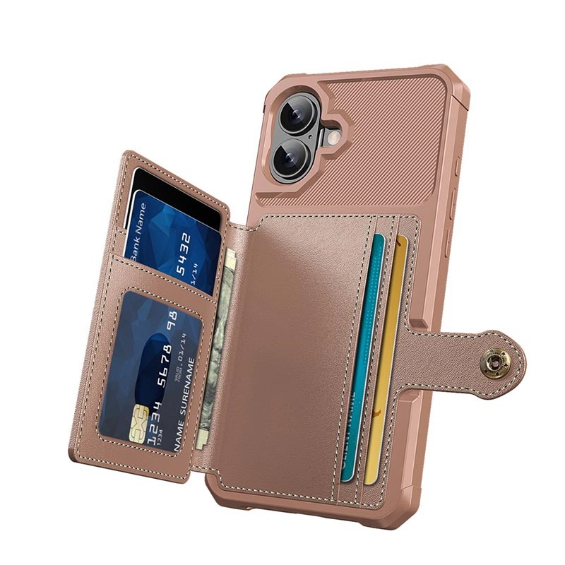 - Detta plånboksfodral för iPhone 17 har en säker knappstängning, plånboksdesign och flera kortfickor, samt plats för kontanter