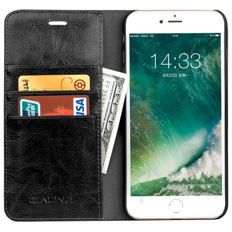 Qialino klassiska plånboksfodral skyddar din iPhone på ett elegant sätt utan att tillföra extra omfång.
