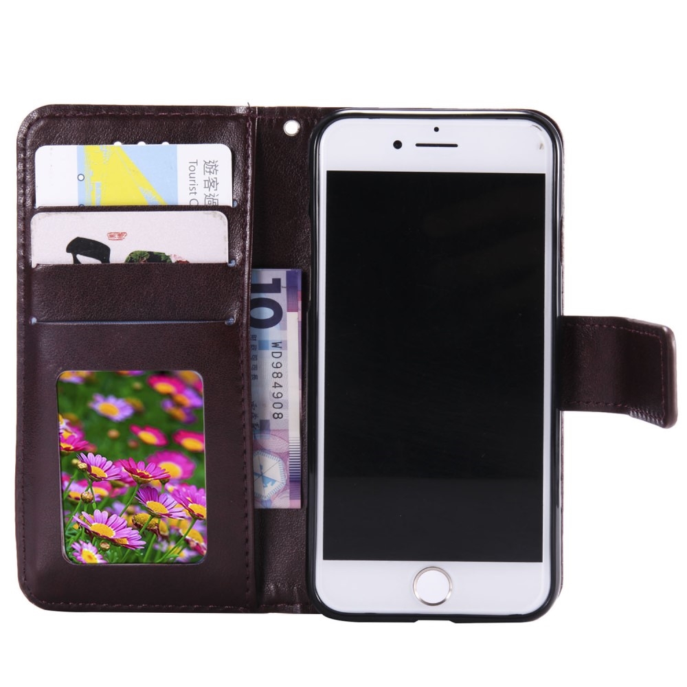 Detta unika fodral skyddar iPhone 7, iPhone 8, iPhone SE (2020), iPhone SE (2022) mot vardagliga repor och stötar och fungerar också som ett mediastativ. Dessutom har fodralet innerfickor för kort och ett större fack för kontanter, då att du kan hålla alla dina värdesaker på en och samma plats.