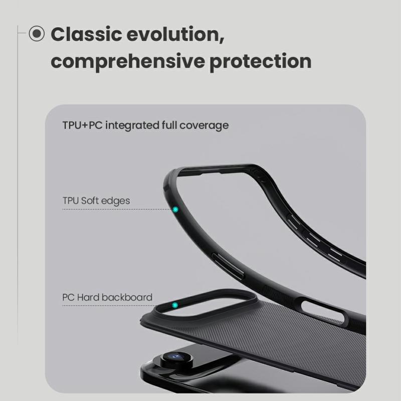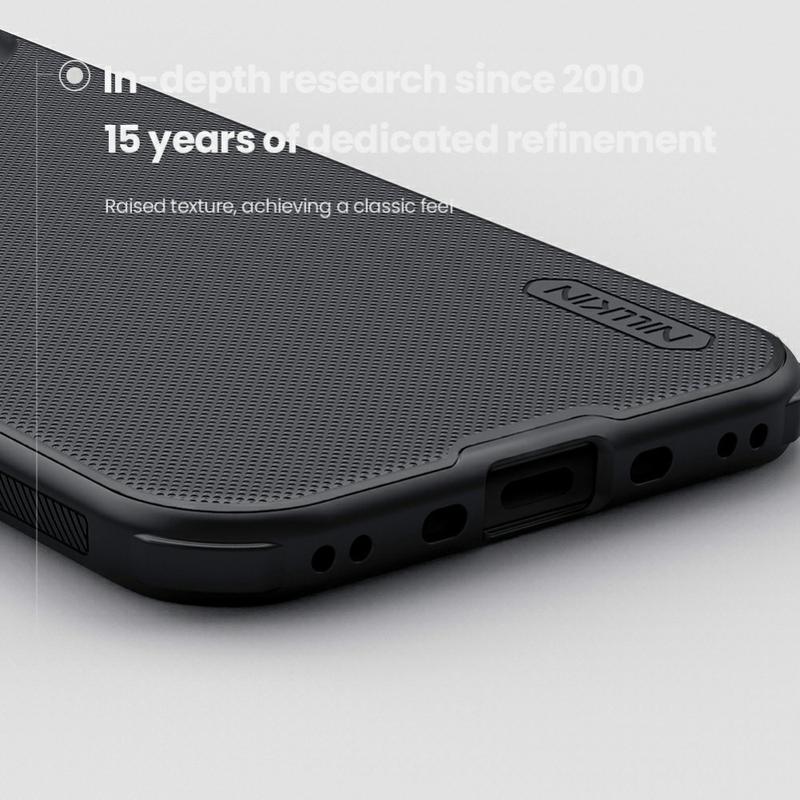 Nillkin har designat denna nya, starkare Pro-version av deras Super Frosted-skal som passar din värdefulla iPhone Air. Det har ett ultimat fallskydd tack vare designen med två olika material - baksida av polykarbonat och ram av TPU-material.