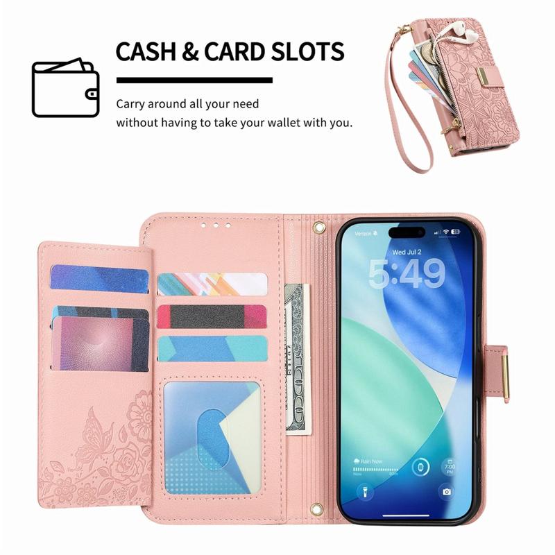 Till skillnad från vanliga iPhone Air-fodral kombinerar detta allt-i-ett plånboksfodral skydd, organisation och elegans. Det blommiga trycket ger det en elegant kant, medan blixtlåsfickan och handledsremmen ger oöverträffad bekvämlighet för det dagliga livet och resor.