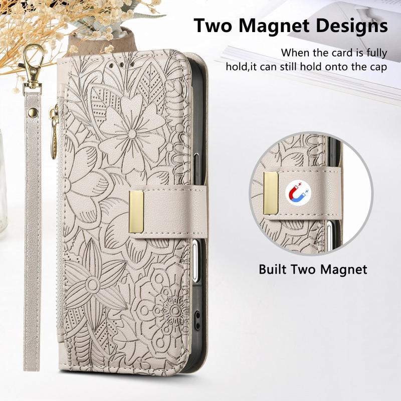 Håll ordning på dina viktigaste saker samtidigt som du ger din iPhone Air elegans med detta plånboksfodral med blommigt bladmönster. Designat med flera kortplatser, en säker blixtlåsficka och en avtagbar handledsrem, är det den perfekta blandningen av praktik och stil. Tillverkat av slitstark TPU och polyuretan, ger det tillförlitligt skydd samtidigt som det fungerar som en modern allt-i-ett-plånbok.