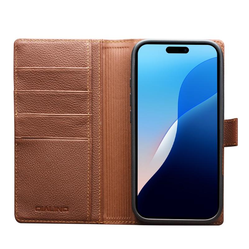 Qialino 2-i-1 plånboksfodral i läder med avtagbart skydd för iPhone Air - MagSafe-kompatibel