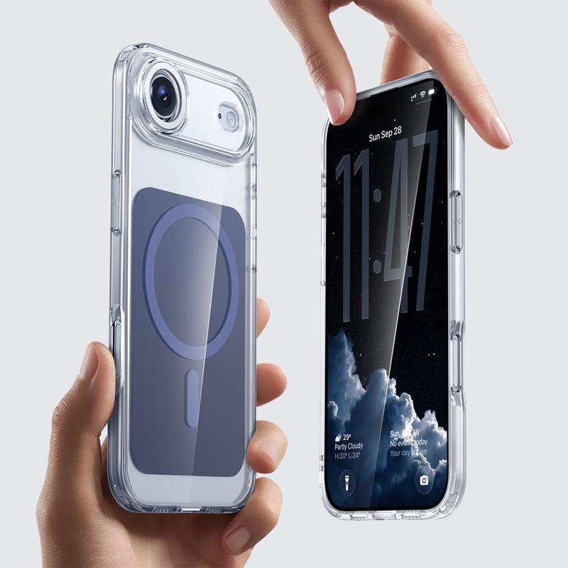 Skalet är särskilt utformat för iPhone Air och har exakt inriktade utskärningar för alla portar, högtalare, knappar och MagSafe-komponenter, vilket säkerställer sömlös användbarhet utan att ta bort skyddet.
