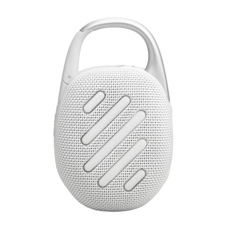 - Integrerad karbinhake för maximal bärbarhet: Fäst enkelt JBL Clip 5 på ryggsäckar, bälten eller utrustning med den robusta och omdesignade karbinhaken, så att din musik alltid är inom räckhåll.