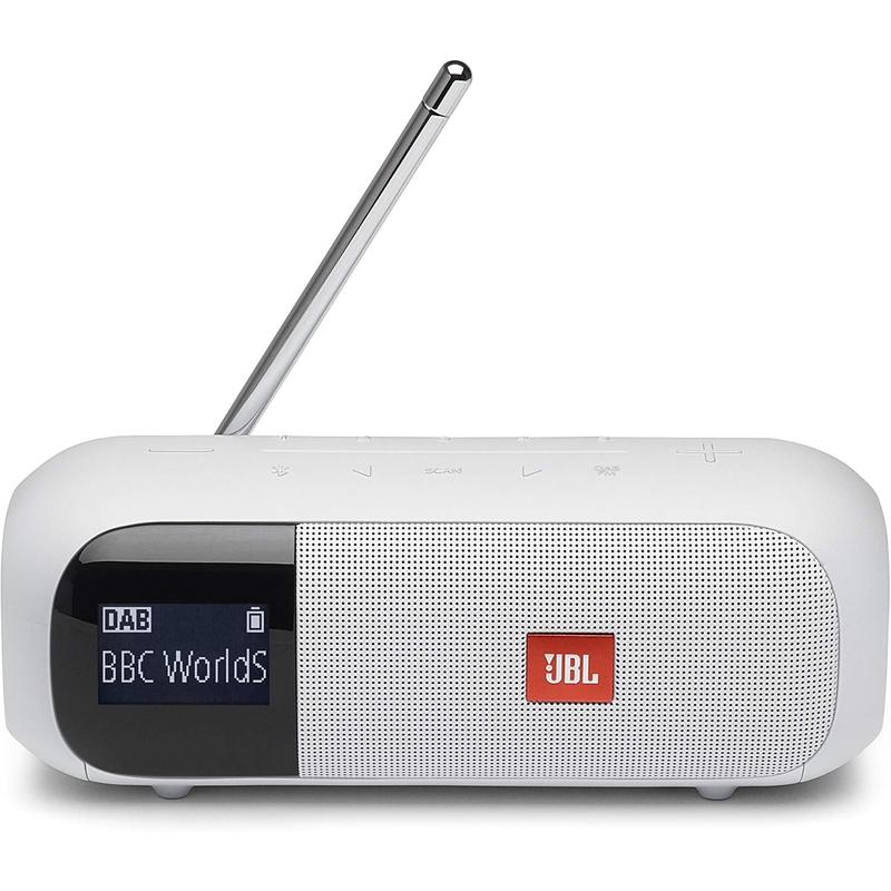 Om du vill ha en kompakt enhet som kombinerar bärbar radio, Bluetooth-strömning och vattentät vardaglig bekvämlighet är JBL Tuner 2 ett utmärkt val. Med stöd för DAB/DAB+/FM, klart JBL-ljud, 12 timmars batteritid och en resevänlig design passar den naturligt in i livet både hemma och på resande fot.