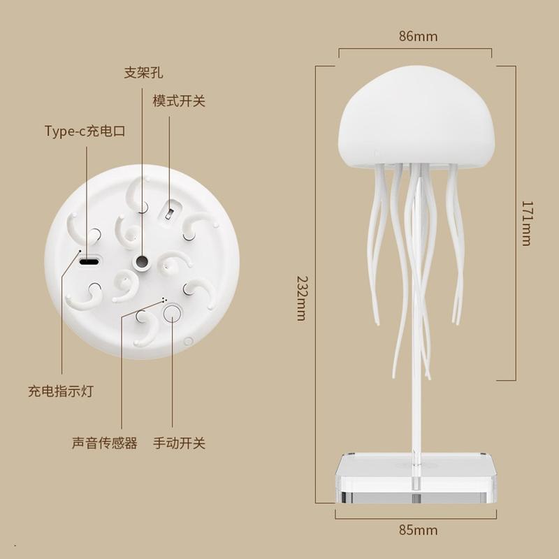 Jellyfish ljudaktiverad smart stämningslampa - 600mAh uppladdningsbar nattlampa med roterande tentakler