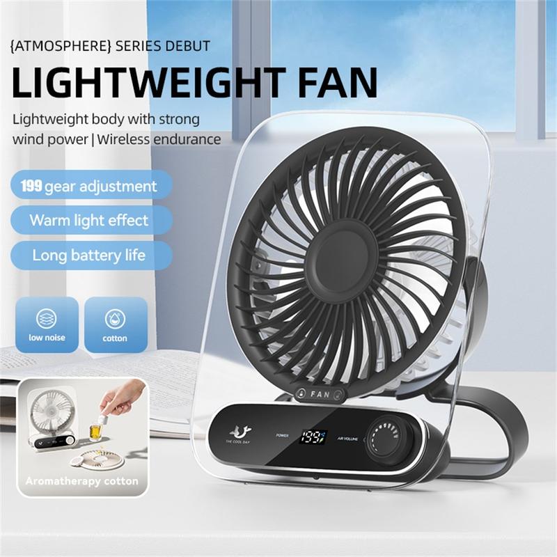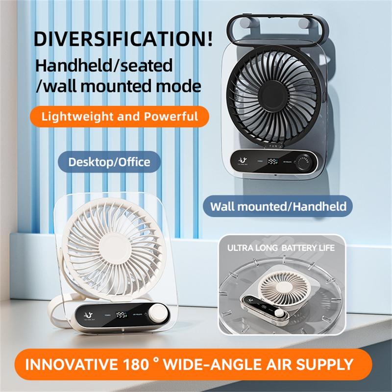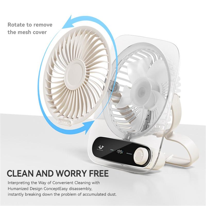 JF136 Portabel skrivbordsfläkt och hängande fläkt med vidvinkel / 199 hastigheter 3000mAh USB-C uppladdningsbar kylare