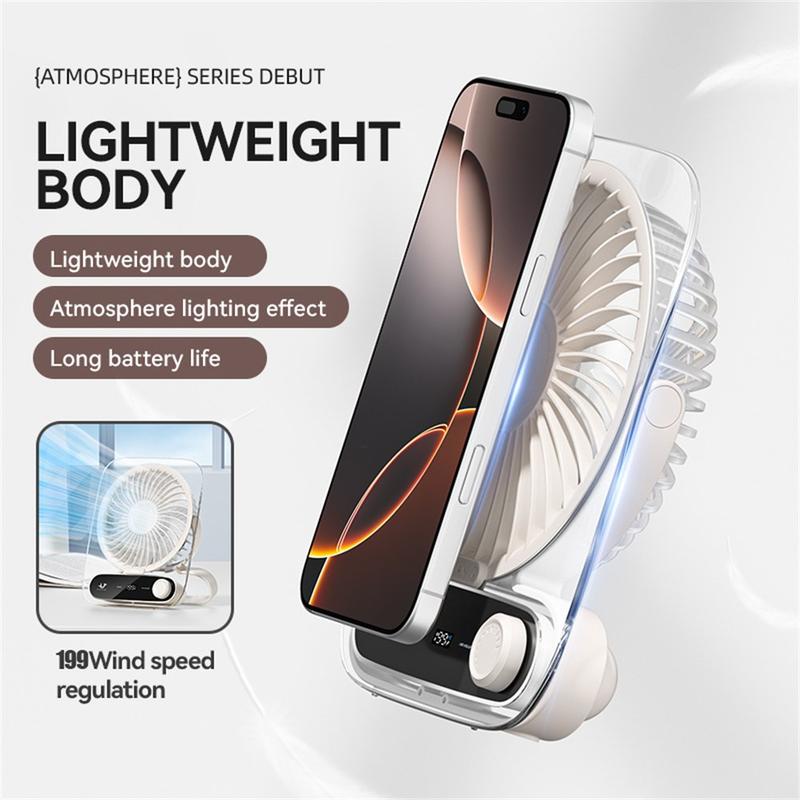 JF136 Portabel skrivbordsfläkt och hängande fläkt med vidvinkel / 199 hastigheter 3000mAh USB-C uppladdningsbar kylare