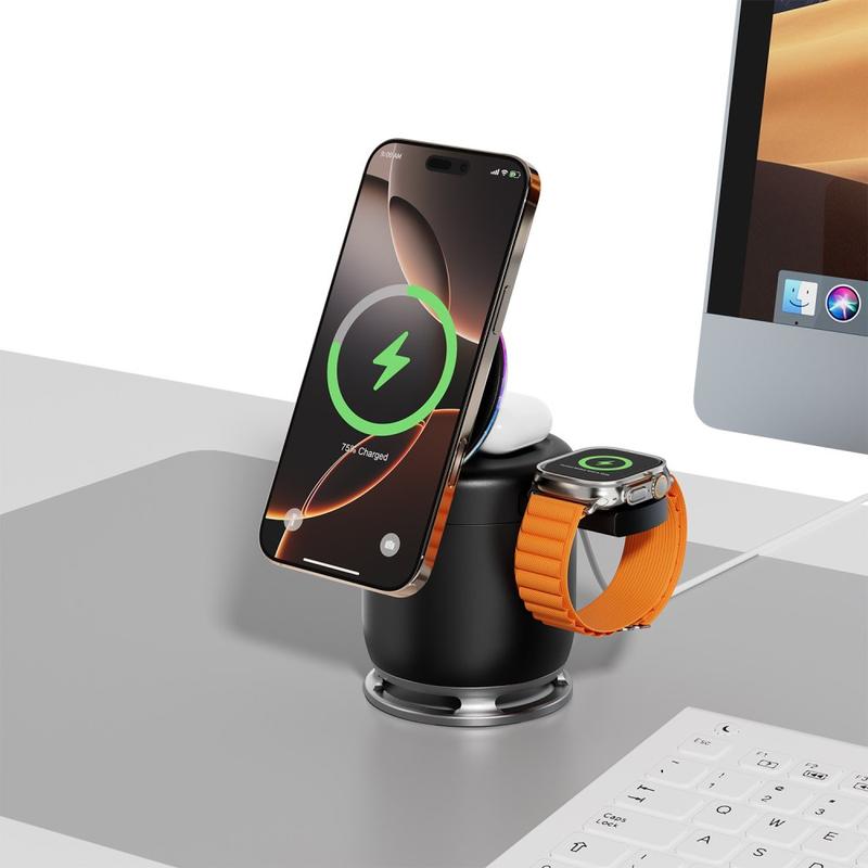 - 3-i-1-laddning: 15W telefon + 2,5 W klocka + 5 W öronsnäckor samtidigt