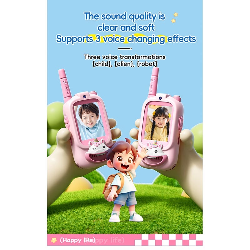 - Tvåvägskommunikation med lång räckvidd - tydlig och stabil röst- och videokommunikation med en räckvidd på 150-500 m, vilket gör den idealisk för parker, campingplatser och lek i grannskapet.