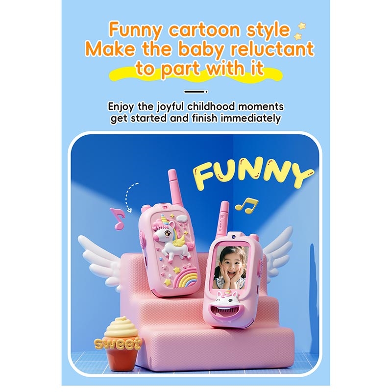 JK200 Interaktiv video walkie-talkie för barn - 2,0" skärm, 150-500 m räckvidd, uppladdningsbar tvåvägskommunikation