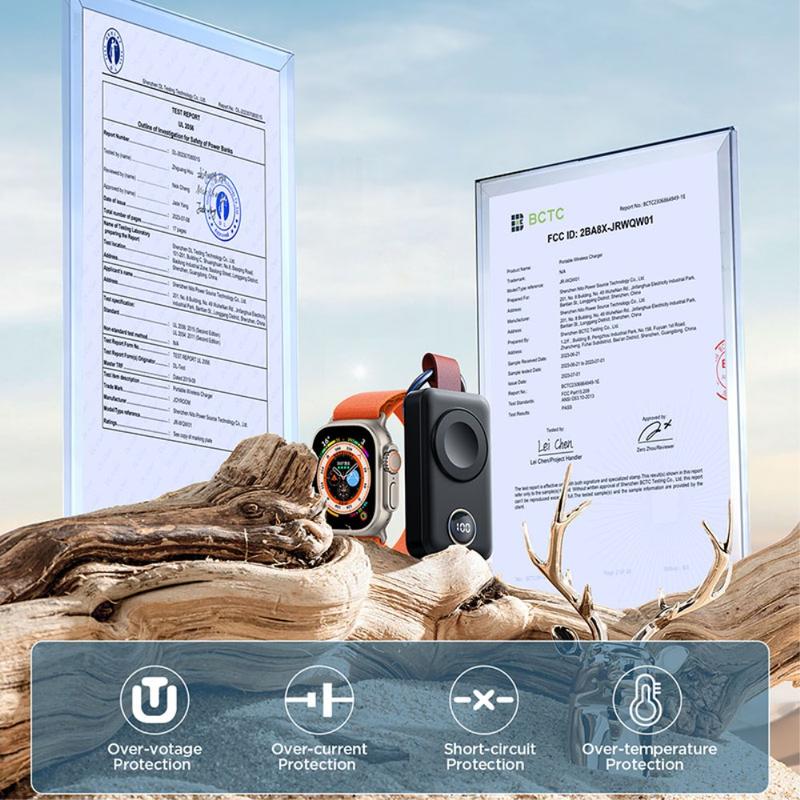 JR-WQW01 är en praktisk lösning om du vill kunna ladda din Apple Watch utan att behöva använda ett vägguttag. Den kompakta nyckelringsformen, den tydliga displayen och den automatiska laddningen gör den enkel att använda var som helst. Med inbyggt säkerhetsskydd är den en pålitlig reservladdare för Apple Watch-användare.