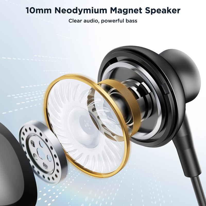 Joyroom JR-EC07 Metal Half-In-Ear Wired Earphones med typ-C-anslutning kombinerar stil, komfort och funktionalitet, vilket gör dem till ett perfekt tillbehör för dem som vill ha tillförlitligt, högkvalitativt ljud med en snygg design.