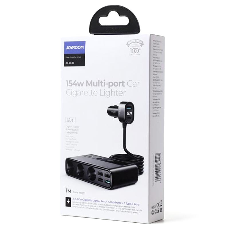 Joyroom JR-CL06 154W Multi-Port USB-Billaddare med 3x Cigarettuttag - 1x USB-C PD, 2x QC3.0 USB, 3x USB