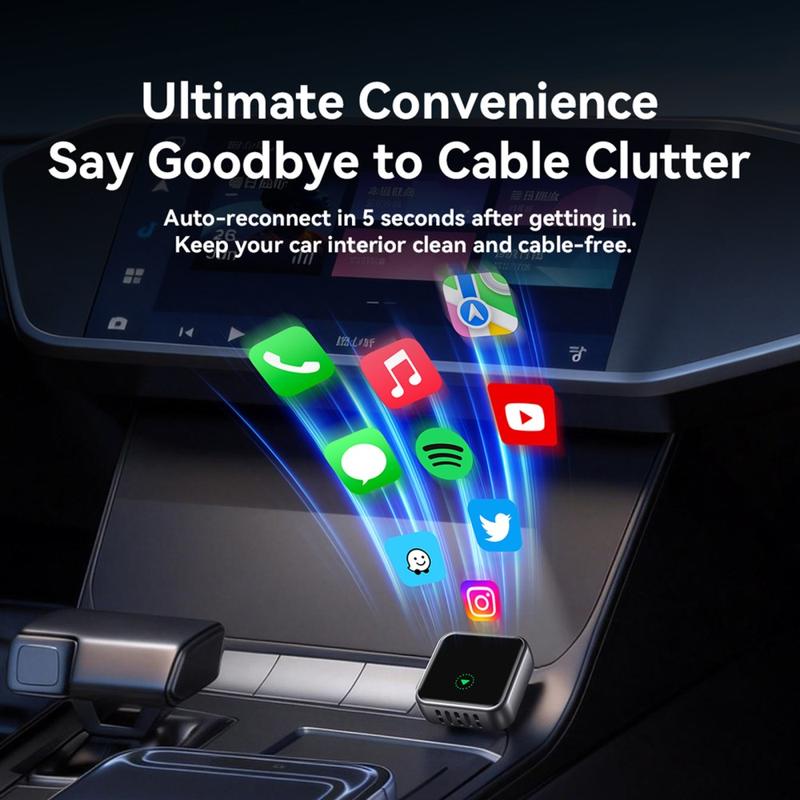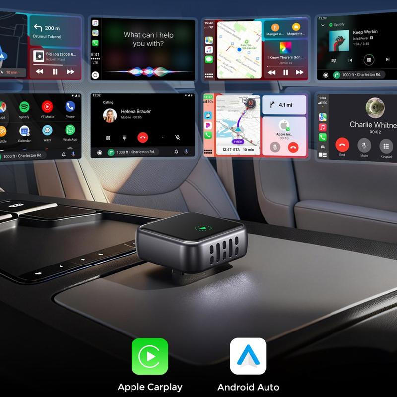 - 2-i-1-adapter som stöder trådlöst Apple CarPlay och trådlöst Android Auto