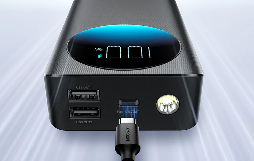 Joyrooms powerbank är utrustad med en lättläst display som visar hur mycket batteriet är laddat. På så sätt kan du vara säker på att enheten inte laddas ur vid fel tillfälle!