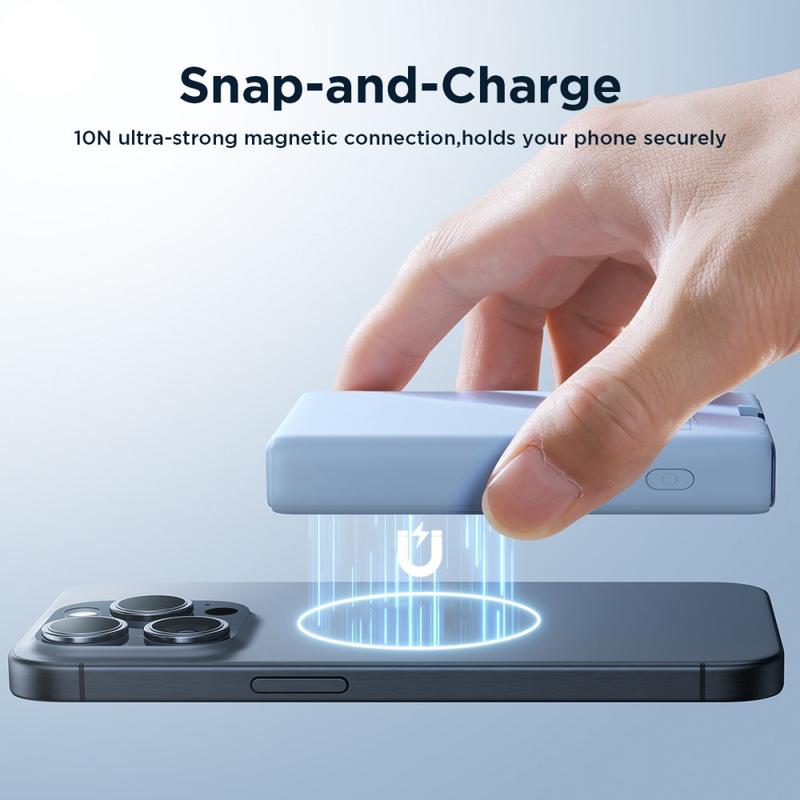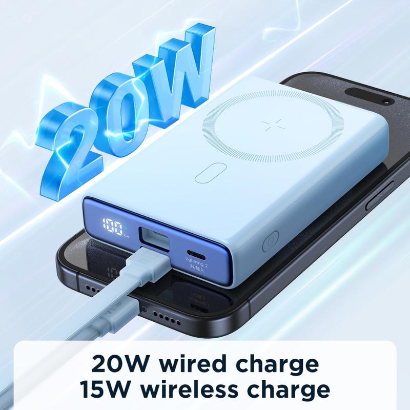 JOYROOM JR-PBM01 PD 20W 10000mAh magnetisk trådlös laddare med inbyggd kabel / kickstand - svart