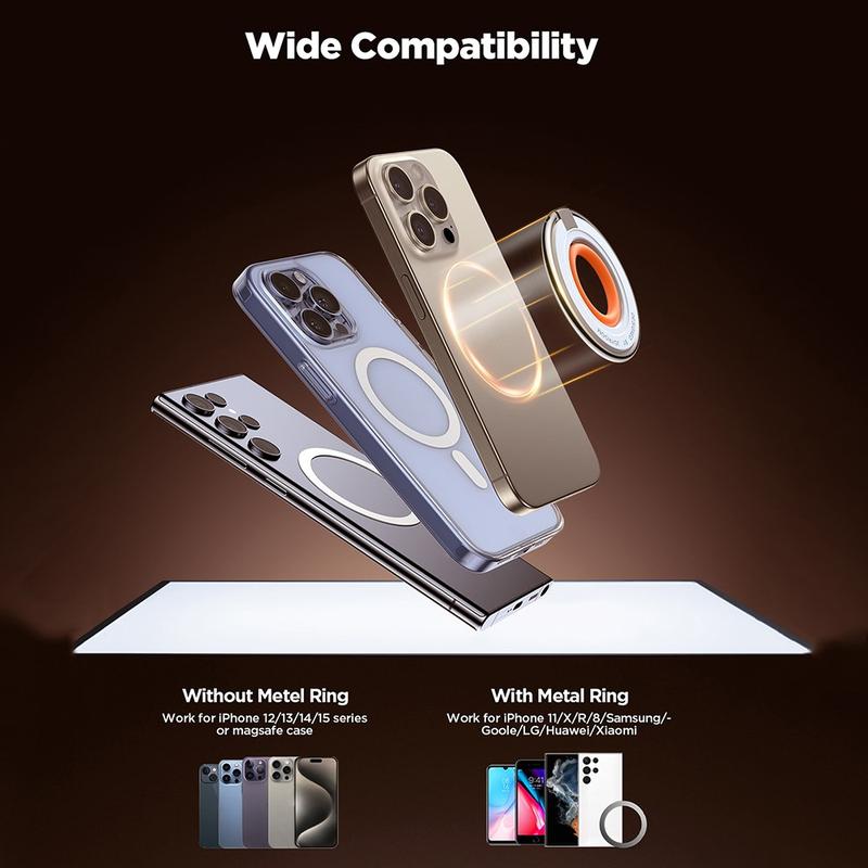 - Inkluderar magnetisk ring för att möjliggöra användning med icke-magnetiska telefoner