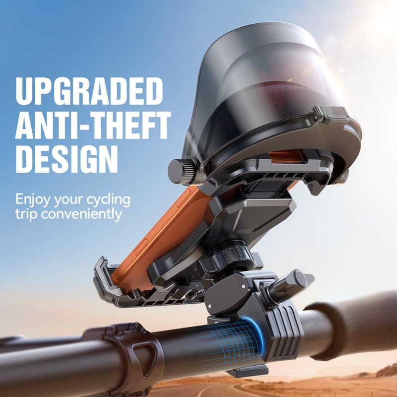 Den snabbkopplade designen gör att du enkelt kan montera eller ta bort din telefon medan du förbereder dig för en cykeltur. En förstärkt halksäker låsmekanism håller enheten på plats även i ojämn terräng, medan den stötdämpande strukturen hjälper till att minska vibrationer från vägen. Med full 360-rotation kan du justera betraktningsvinkeln för att passa olika cykelpositioner.
