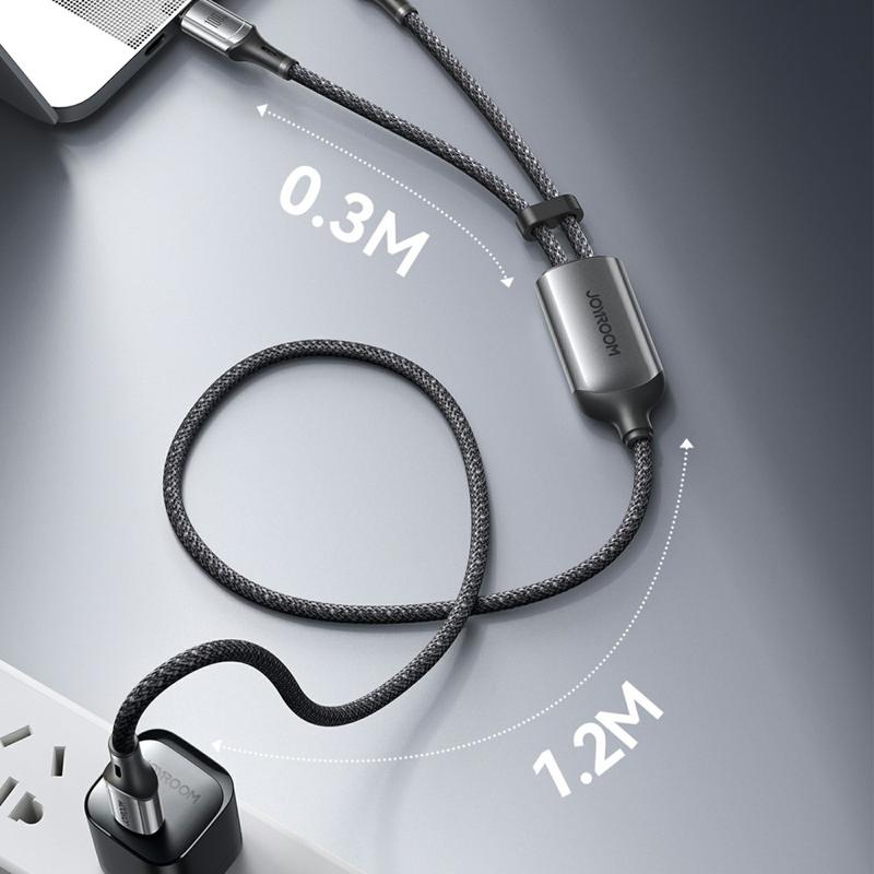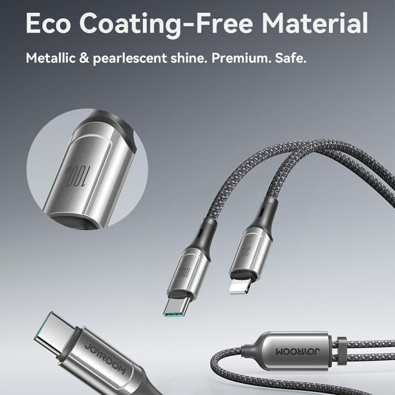 Joyroom S-A57 100W 2-i-1-laddningskabel - USB-C till USB-C + Lightning Dual Connector, 480 Mbps datasynkronisering, nylonflätad