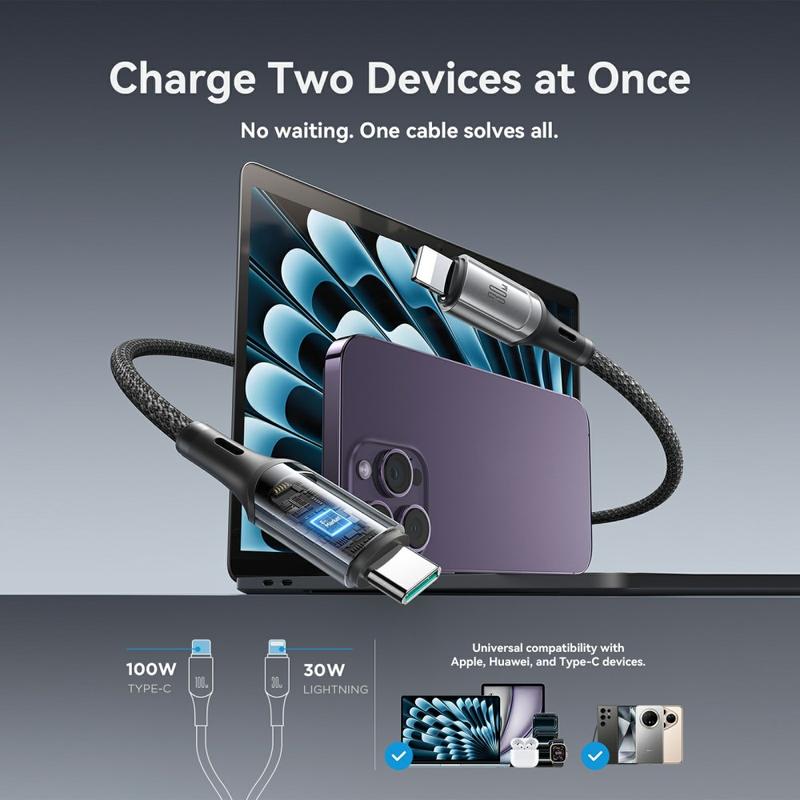 - Design med dubbla anslutningar: USB-C till USB-C + Lightning för bredare enhetskompatibilitet