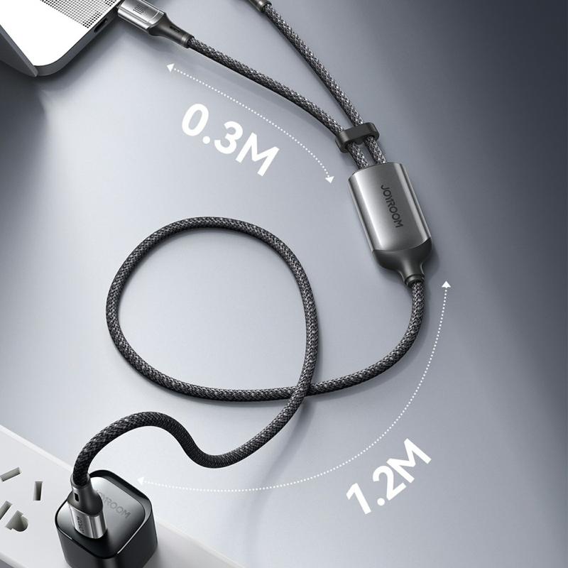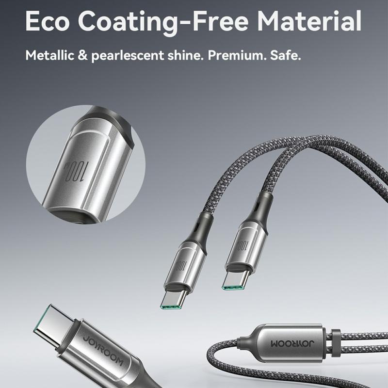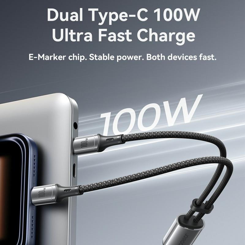Joyroom S-A57 USB-C till dubbel USB-C-kabel - 100 W snabbladdning med e-märkning, 480 Mbps datasynkronisering, nylonflätad, buntband medföljer