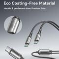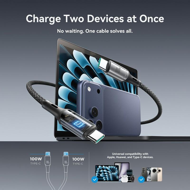 Ladda två USB-C-enheter samtidigt med JOYROOM S-A57 USB-C till dubbel USB-C-kabel. Den är byggd för moderna bärbara datorer, surfplattor och smartphones och stöder upp till 100 W snabbladdning och använder ett E-Marker smart management-chip för att leverera stabil ström till kompatibla enheter. Du får också 480 Mbps dataöverföring för vardaglig synkronisering, så en kabel täcker både laddning och filöverföring. Den hållbara 48-strängade nylonflätade konstruktionen är utformad för att motstå nötning och daglig böjning, medan det medföljande kabelorganisationsbandet håller din installation snygg på skrivbordet eller i en väska. Med testade hållbarhetsegenskaper som 10 000+ isättningar och en lastkapacitet på 7 kg är den gjord för frekvent användning.