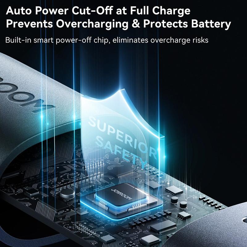 Det inbyggda intelligenta chipet hjälper till att reglera spänning och ström för en mer stabil laddning, medan den smarta automatiska avstängningsfunktionen stänger av strömmen när enheten är fulladdad. Detta bidrar till att skydda batteriet och gör det tryggare att ladda över natten. Den tvåfärgade LED-indikatorn gör det också lättare att se laddningsstatusen med ett ögonkast.