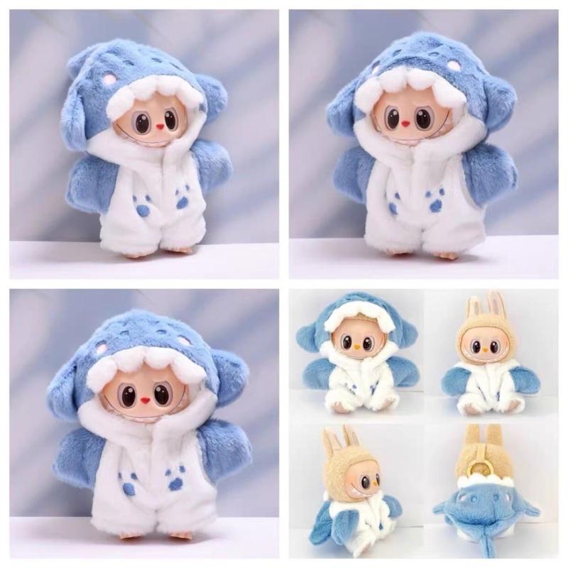Shark Hooded Jumpsuit för Labubu Doll 17cm - Söt plysch pyjamas kostym för Mini Figurine