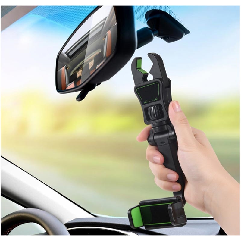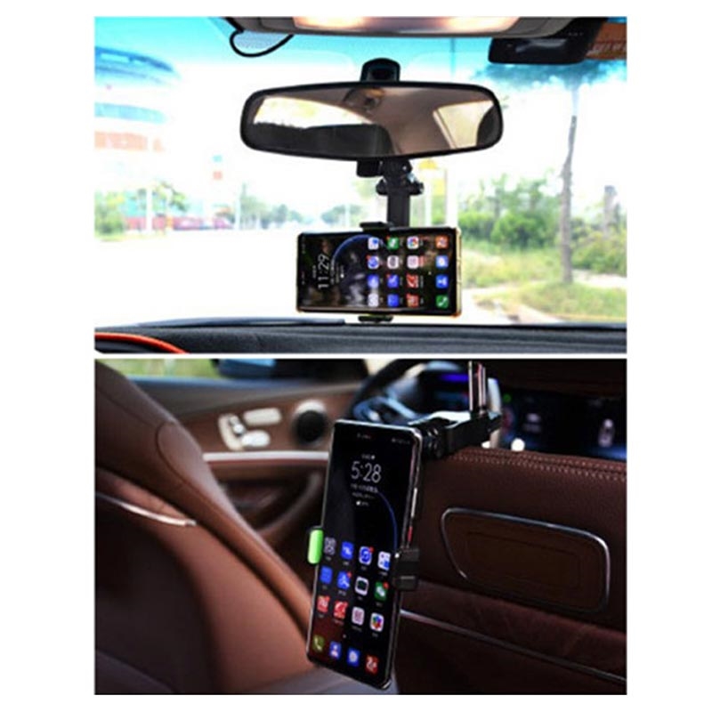 Med sin innovativa design fästs denna bilhållare enkelt på din bils backspegel, och håller din smartphone inom räckhåll samtidigt som den säkerställer fri sikt över vägen framför dig. Den 360-graders roterande funktionen låter dig justera vinkeln på din smartphone, vilket ger optimal synlighet och minskar distraktionerna under körning.