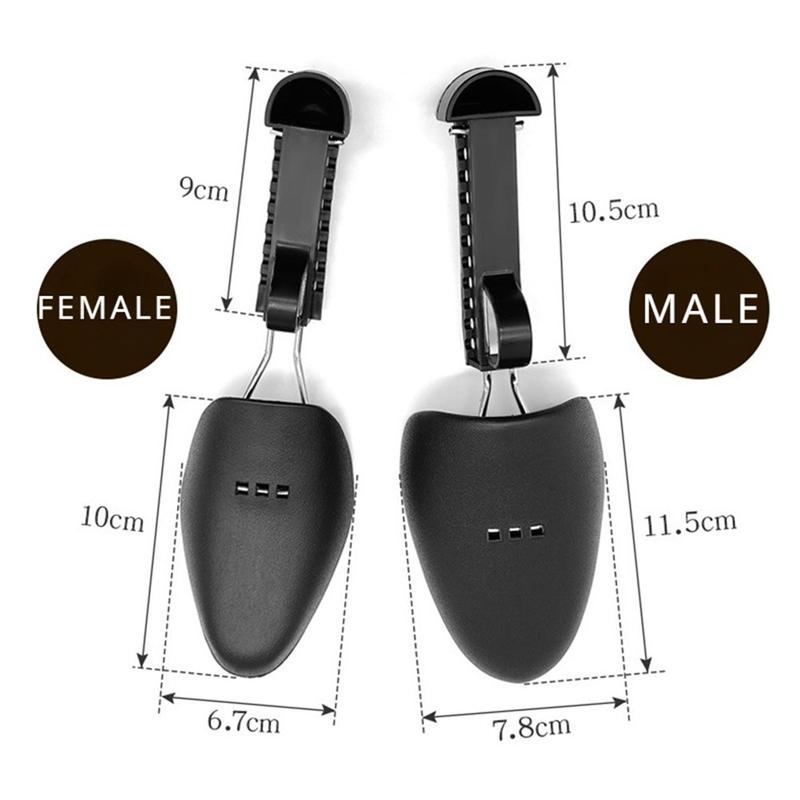 - Justerbar längd och bredd: Anpassa enkelt skosträckaren för att matcha ett brett utbud av skostorlekar för män och kvinnor, från avslappnade träningsskor till formella loafers.