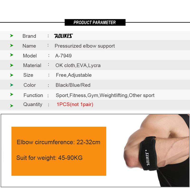 AOLIKES A-7949 Elbow Support ger den perfekta blandningen av komfort, flexibilitet och skydd. Genom att främja korrekt inriktning och minska belastningen gör det att du kan hålla dig aktiv längre, oavsett om du är en engagerad idrottsman eller bara vill förhindra vardaglig värk. Den justerbara designen och det ventilerande tyget gör det till en pålitlig följeslagare för alla fitnessmål och behov av armbågsstöd.